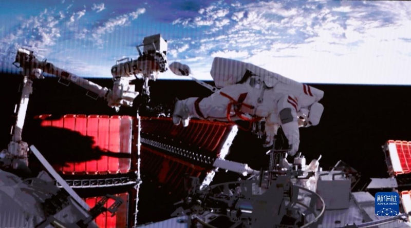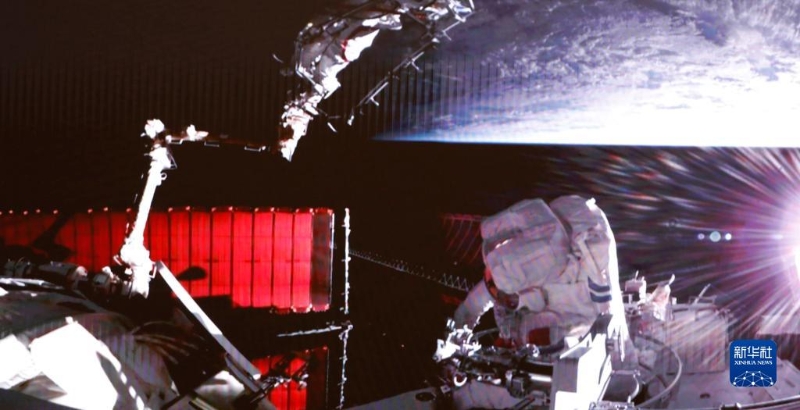 2月9日在北京航天飛行控制中心拍攝的神舟十五號(hào)航天員張陸成功出艙的畫(huà)面。新華社記者 劉芳 攝