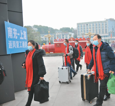 2月6日,四川省南充市210名外出務(wù)工人員通過南充火車站“返崗復(fù)工綠色通道”進(jìn)入候車廳,踏上返崗之路。余中華攝(人民圖片)