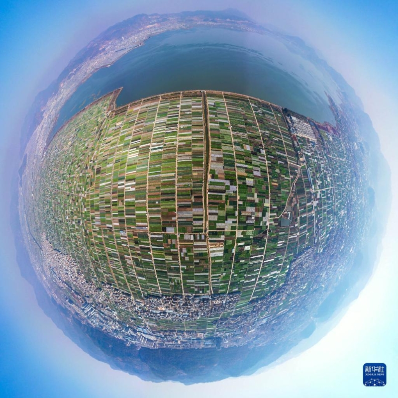 早春時(shí)節(jié),云南省玉溪市通海縣田園風(fēng)光秀美。五彩斑斕的農(nóng)田與湖水、山巒交相輝映,構(gòu)成了一幅美麗的畫卷。新華社記者 胡超 攝