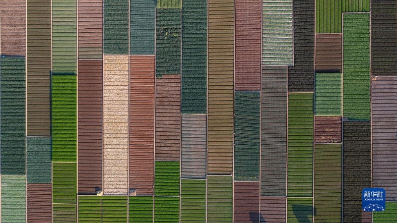 早春時(shí)節(jié),云南省玉溪市通??h田園風(fēng)光秀美。五彩斑斕的農(nóng)田與湖水、山巒交相輝映,構(gòu)成了一幅美麗的畫卷。新華社記者 胡超 攝