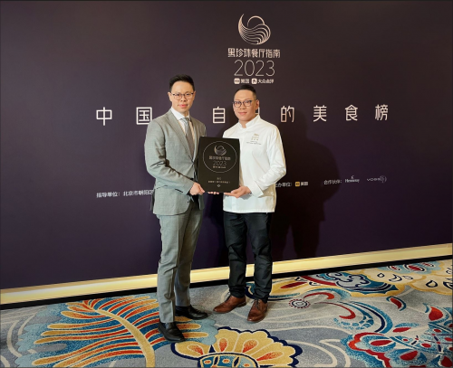 01美高梅餐飲部助理副總裁李靖輝及「金殿堂」總廚徐偉豪出席《黑珍珠餐廳指南2023》頒獎(jiǎng)典禮。