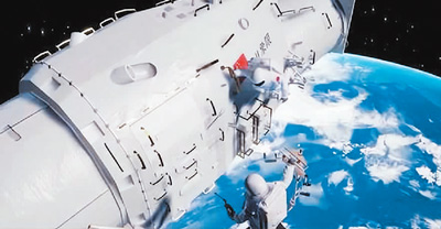 航天員從天宮空間站出艙開展巡天空間望遠鏡維護作業(yè)示意圖。