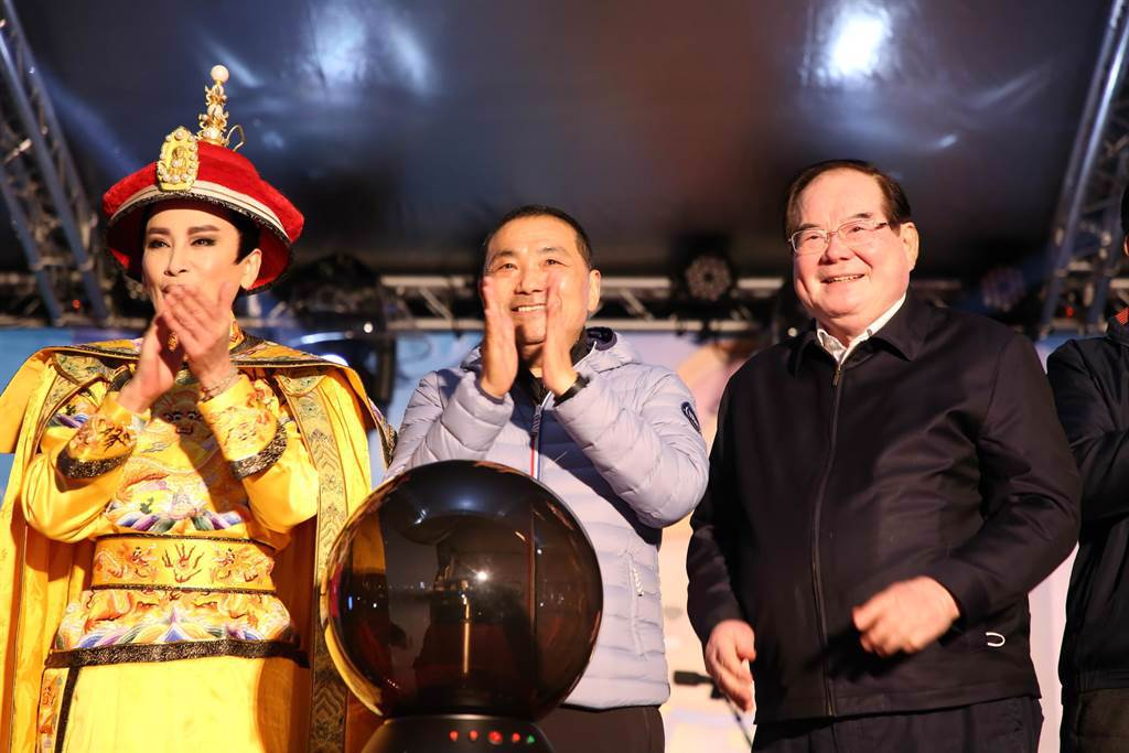 圖為侯友宜(中)1月26日與陳亞蘭(左)、李干龍(右)等共同啟動新北燈會“兔來運轉(zhuǎn)”主燈。(中時電子報資料照/黃敬文攝)