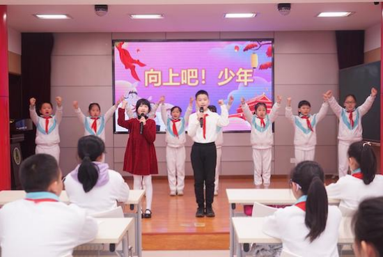 唯有志存高遠(yuǎn),才能不落窠臼。只有腳踏實(shí)地,才能壯闊向前。朱校長(zhǎng)的講話(huà)令雙榆師生備受鼓舞。時(shí)代不負(fù)奮斗者,歲月垂青追夢(mèng)人。未來(lái)中國(guó)的美好藍(lán)圖要靠新一代追夢(mèng)人去用心描繪。在學(xué)校團(tuán)支部的引領(lǐng)下,青年教師代表和少先隊(duì)員代表同聲描繪《未來(lái)中國(guó)》,表達(dá)自己在奮斗中淬煉最美青春,在努力中繪就幸福童年的決心。
