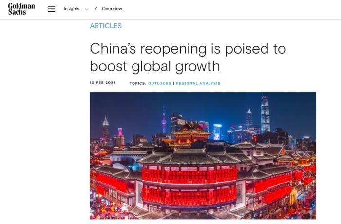 中新網(wǎng)2月13日電 “中國優(yōu)化疫情防控措施不僅會(huì)推動(dòng)中國的經(jīng)濟(jì)復(fù)蘇,還將促進(jìn)全球的經(jīng)濟(jì)增長。”高盛集團(tuán)近日在其官方網(wǎng)站發(fā)表的文章中,如是說。