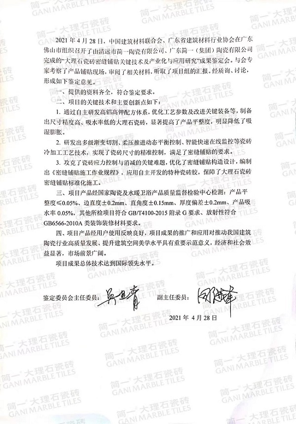 十三年來,簡一始終專注在大理石瓷磚領(lǐng)域的研發(fā),是“國家高新技術(shù)企業(yè)”,擁有“廣東省大理石瓷磚工程技術(shù)研究中心”、“廣東省企業(yè)技術(shù)中心”、“中國建筑衛(wèi)生陶瓷行業(yè)大理石瓷磚研究中心”、華南理工大學(xué)大理石瓷磚密縫鋪貼技術(shù)研究中心等科研創(chuàng)新平臺。如今,簡一通過自主設(shè)計開發(fā)已掌握了大理石瓷磚制造核心技術(shù)、專有技術(shù)。據(jù)統(tǒng)計,已申請發(fā)明專利47項,實用新型專利34項,外觀專利141項。