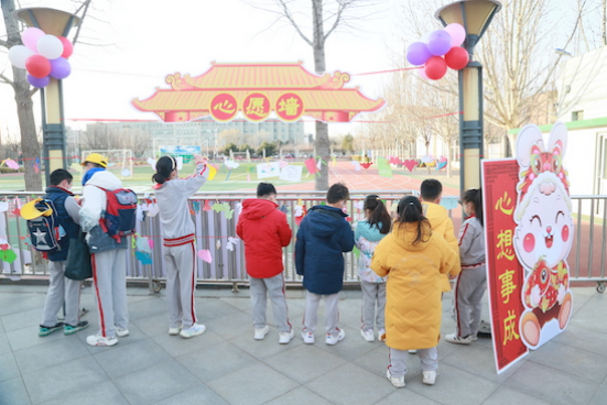 每一位進(jìn)入校園的師生都將自己的“心愿卡”系在“心愿墻”,“希望學(xué)校舉行特別多的有意思的活動(dòng)”、“希望我的數(shù)學(xué)能學(xué)得更好”……小小的卡片寄托著同學(xué)們一個(gè)個(gè)美好的愿望。