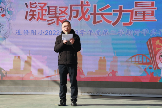 海淀進(jìn)校校長助理鐘建業(yè)進(jìn)行了講話,對(duì)進(jìn)修附小學(xué)校發(fā)展、課程建設(shè)、教學(xué)提質(zhì)、學(xué)生培養(yǎng)、教師發(fā)展等方面予以高度肯定,祝福同學(xué)們?cè)谛碌膶W(xué)期健康快樂,祝福老師們工作順利,育更多時(shí)代英才;祝福學(xué)校蒸蒸日上,收獲更多美譽(yù)度!