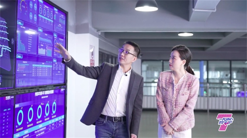 趙今麥與常婷參觀七度空間生產(chǎn)流水線、了解相關(guān)高科技設(shè)備