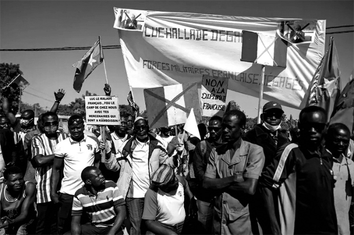 就地區(qū)伙伴而言,馬里和布基納法索相繼發(fā)生軍事政變,昔日盟友“去法國化”愈演愈烈。近年來,由于新冠疫情、恐怖活動(dòng)等原因,西非地區(qū)軍事政變頻發(fā),馬里在2020年8月和2021年5月發(fā)生兩次軍事政變,布基納法索2022年發(fā)生兩次軍事政變。政變后的馬布兩國過渡政府為收攏人心、鞏固自身政權(quán),采取“去法國化”政策,而法國也對(duì)政變后過渡政府的合法性提出質(zhì)疑,馬法、布法雙邊關(guān)系不斷惡化。前有馬里宣布退出聯(lián)合反恐的薩赫勒五國集團(tuán),并驅(qū)離法國駐該國大使;后有布基納法索宣布終止允許法國在布領(lǐng)土駐軍的軍事協(xié)議,并要求駐扎在該國的法國軍隊(duì)在一個(gè)月內(nèi)撤離。