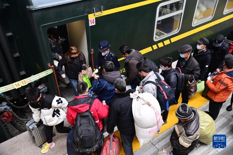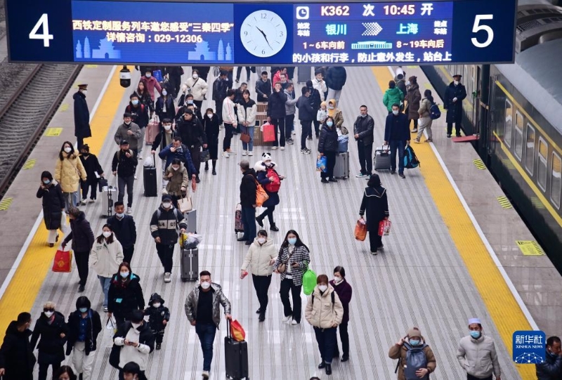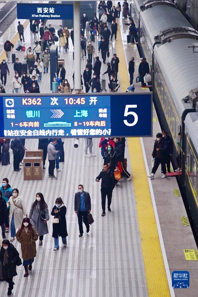 2月15日,乘坐K362次列車的旅客抵達(dá)西安站。