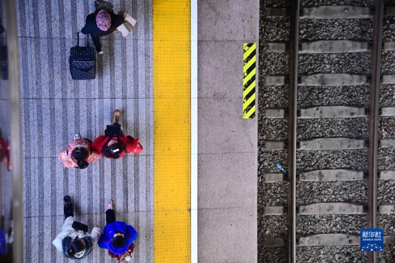 2月15日,旅客在安徽阜陽西站等待檢票。