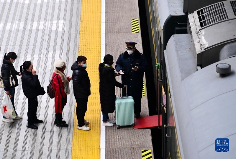 2月15日,旅客在河南洛陽龍門站乘車出行。