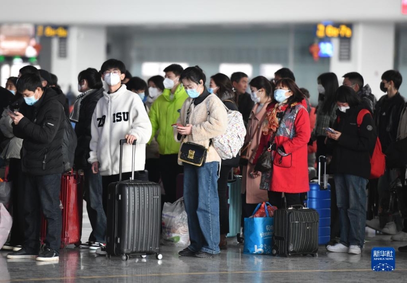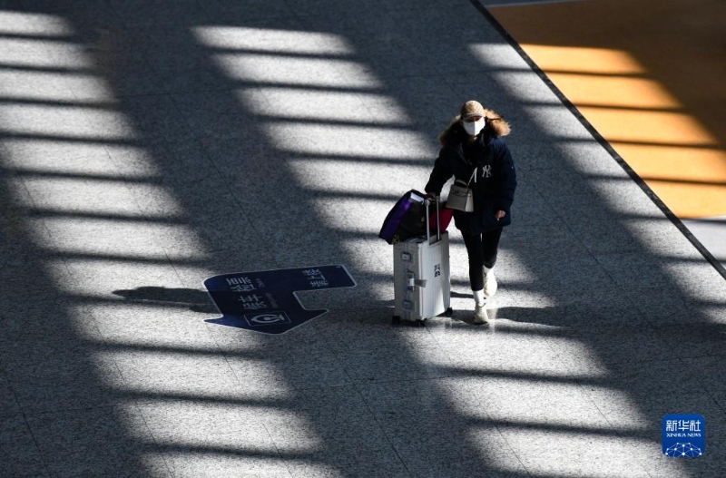 2月15日,旅客在安徽阜陽西站進(jìn)站準(zhǔn)備乘車。