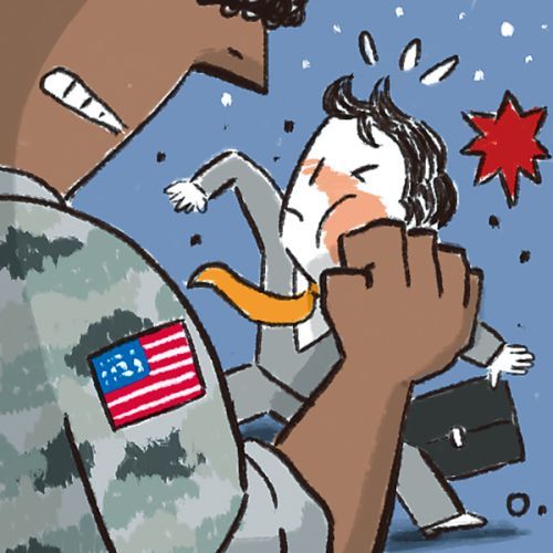 駐韓美軍暴打韓國市民的漫畫(韓媒《國民日?qǐng)?bào)》)
