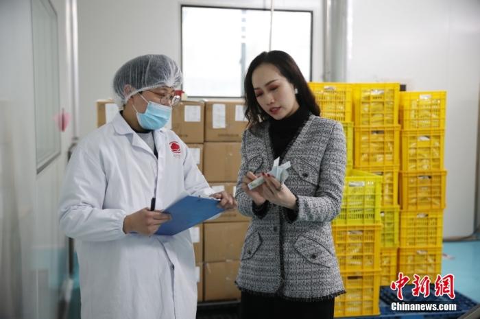 圖為史家怡(右)檢查公司產(chǎn)品質(zhì)量。 中新社記者 張亨偉 攝