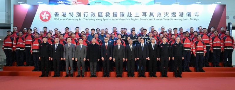 2月17日拍攝的香港特區(qū)救援隊赴土耳其救災返港儀式現(xiàn)場。新華社發(fā)