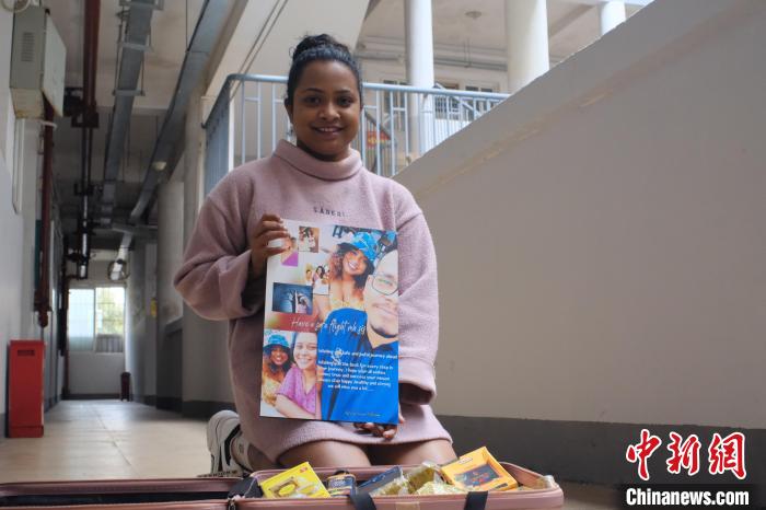 圖為斯里蘭卡籍留學(xué)生張安妮正在展示自己行李箱中家人的照片?!⒖÷?攝