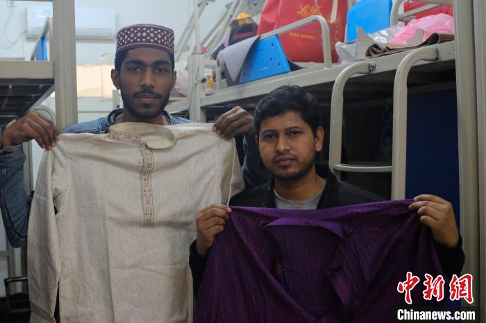 圖為兩名孟加拉國(guó)籍留學(xué)生正在展示自己的傳統(tǒng)服飾?!⒖÷?攝