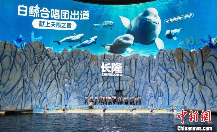 2月19日是世界鯨魚日,珠海長(zhǎng)隆海洋王國(guó)的白鯨為“星星的孩子”開唱 陸紹龍 攝