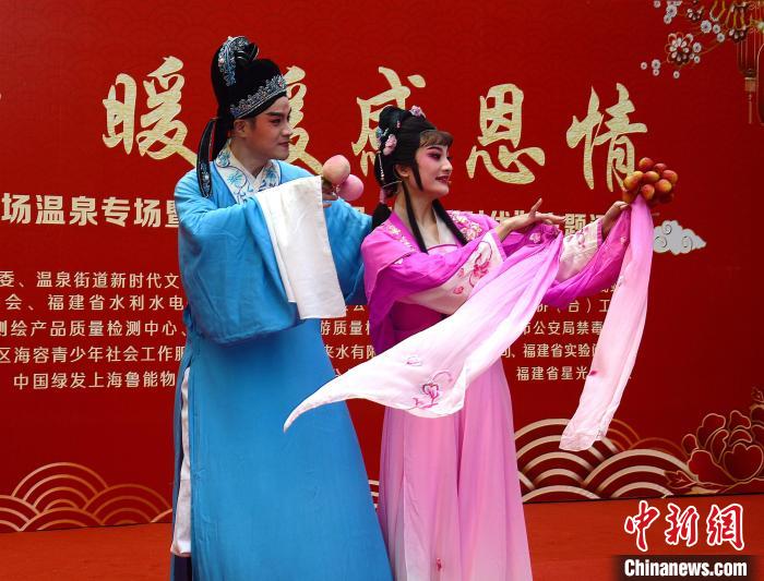 中新網(wǎng)福州2月19日電 (記者 劉可耕)19日農(nóng)歷正月廿九,恰逢福州特有的傳統(tǒng)民俗節(jié)日——拗九節(jié),也稱“孝順節(jié)”。當(dāng)天,惠風(fēng)和暢,陽(yáng)光明媚。來(lái)自福建省實(shí)驗(yàn)閩劇院的優(yōu)秀青年演員為福州湯門社區(qū)居民表演傳統(tǒng)閩劇《荔枝換絳桃·投荔》,尤其受到現(xiàn)場(chǎng)社區(qū)老人的喜愛(ài),隨后演員們還為老人們送上了甜甜的拗九粥。