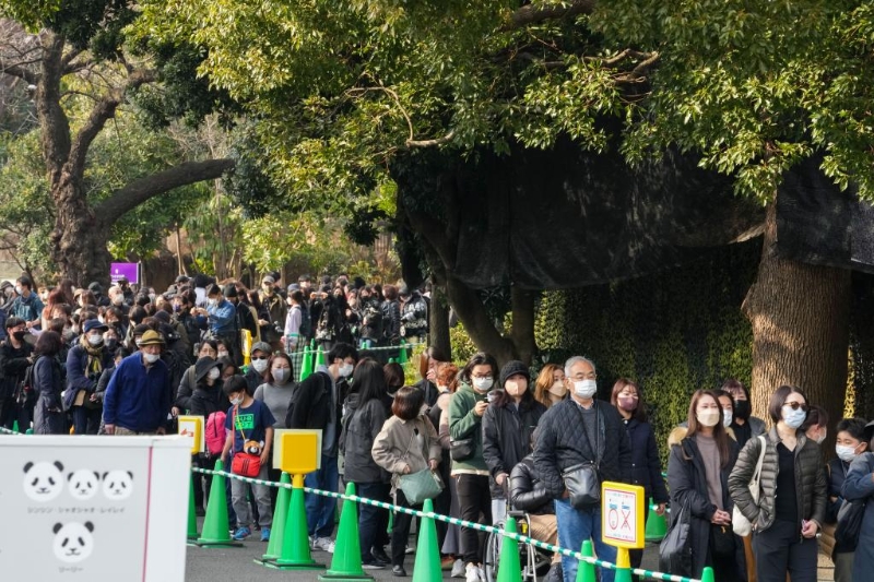 2月19日,在日本東京上野動(dòng)物園,游客排隊(duì)等待與大熊貓“香香”告別。新華社記者張笑宇攝
