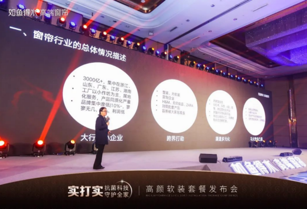 會上,如魚得水全國各地的經(jīng)銷商伙伴、行業(yè)大咖、權(quán)威媒體齊聚一堂,一同見證如魚得水高端窗簾5880元高顏軟裝套餐的重磅首發(fā),共議行業(yè)現(xiàn)狀,深入探索窗簾行業(yè)健康發(fā)展新趨勢。其中,如魚得水高端窗簾營銷副總裁劉建龍、尼爾森資深研究專家孫宇理、中華醫(yī)學(xué)會主任醫(yī)師畢大衛(wèi)均發(fā)表了重要講話。