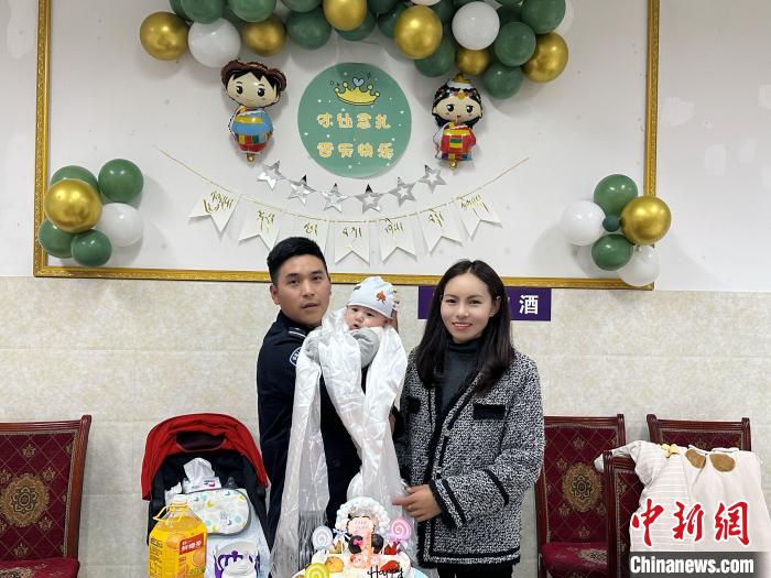 圖為在派出所為孩子過百天?!O月 攝