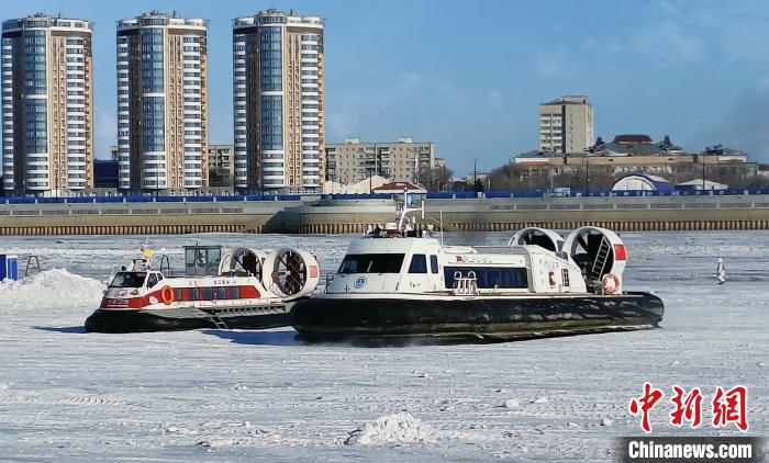 中新網(wǎng)哈爾濱2月21日電 (馮晨宇 記者 劉錫菊)為全面提高水上突發(fā)事件處置能力,保障因疫情暫停近三年的黑河水路口岸恢復(fù)通關(guān)后中俄國際客運氣墊船運輸安全,2月21日上午,黑河海事局與黑河市應(yīng)急管理局、黑河市消防救援支隊、黑河港務(wù)局有限公司共4家單位聯(lián)合舉行“龍威”黑河2023年國際客運氣墊船應(yīng)急演練。