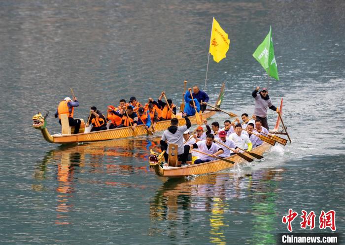 中新網(wǎng)湖北秭歸2月21日電 (郭曉瑩 鄒媛 吳波)2月21日,農(nóng)歷二月初二,地處三峽庫區(qū)的湖北省秭歸縣萬古寺村舉辦賽龍舟等傳統(tǒng)民俗活動(dòng),祈盼風(fēng)調(diào)雨順、五谷豐登。