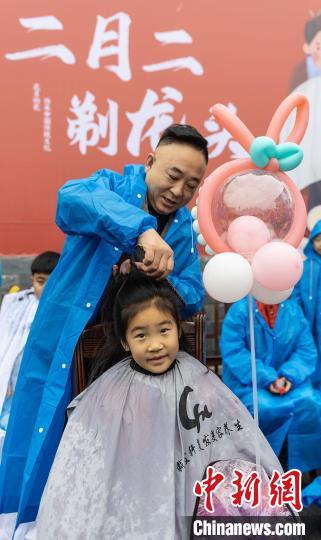 理發(fā)師為孩童“剃龍頭” 鄭家裕 攝