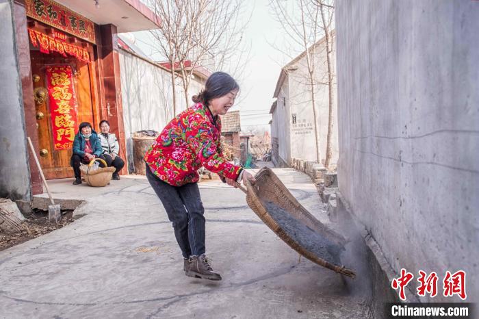 日照市莒縣夏莊鎮(zhèn)小苗蔣村村民圍著房子四周撒一圈灰,祈盼平平安安無病無災(zāi)?!£惞饨?攝