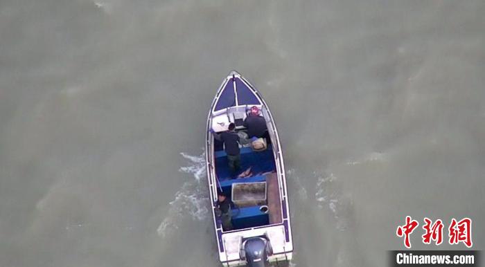 無(wú)人機(jī)拍攝非法捕撈的300馬力快艇。 張冉 攝