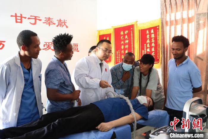 中國援埃塞俄比亞第23批醫(yī)療隊麻醉醫(yī)生趙勇輝為當?shù)蒯t(yī)務人員進行培訓。(資料圖) 河南省衛(wèi)健委供圖