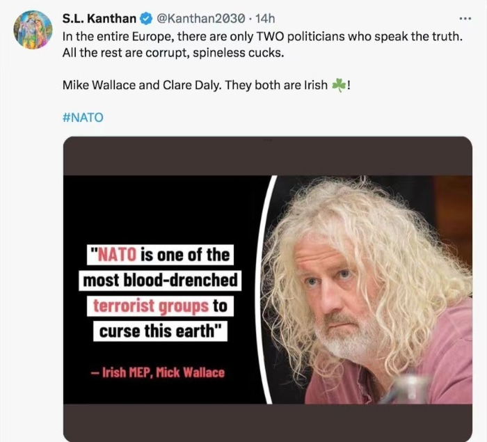 華萊士15日在歐洲議會(huì)全會(huì)上發(fā)言時(shí)指出,在俄烏沖突中,西方領(lǐng)導(dǎo)人應(yīng)該追求和平,而不是一味增加軍援。他批評(píng)說,明明應(yīng)該呼吁?;鹋c和談,“西方卻在不計(jì)后果的戰(zhàn)爭氛圍中越陷越深”,“西方領(lǐng)導(dǎo)人在把這場戰(zhàn)爭拖得無休無止”,“你們先提供了頭盔,現(xiàn)在又提供坦克,我為歐洲感到擔(dān)憂”。