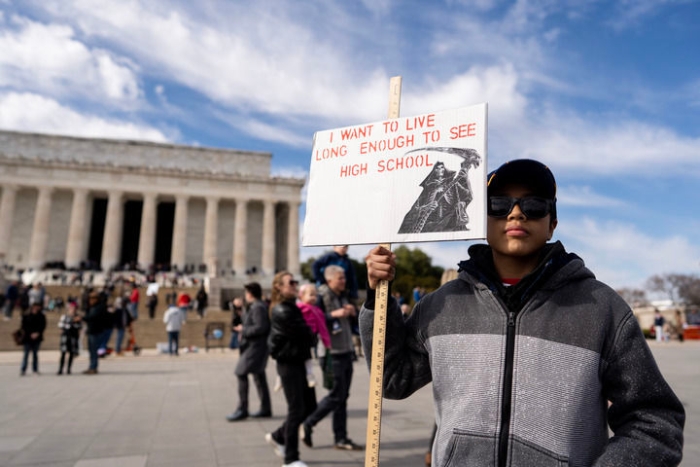 2月19日,在美國首都華盛頓,一名少年參加要求美國停止煽動俄烏沖突的反戰(zhàn)集會,手中標語牌上寫著“我還想活到上高中”。新華社記者劉杰攝
