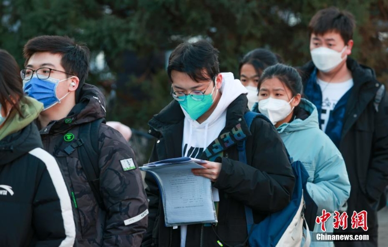 資料圖:北京工業(yè)大學考點外,考生在排隊進入考場。 中新社記者 賈天勇 攝