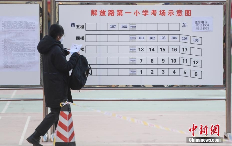 資料圖:在山東濟南解放路第一小學考點,一名考生正在查找考場。當日,2023年全國碩士研究生招生考試拉開帷幕。 中新社記者 張勇 攝