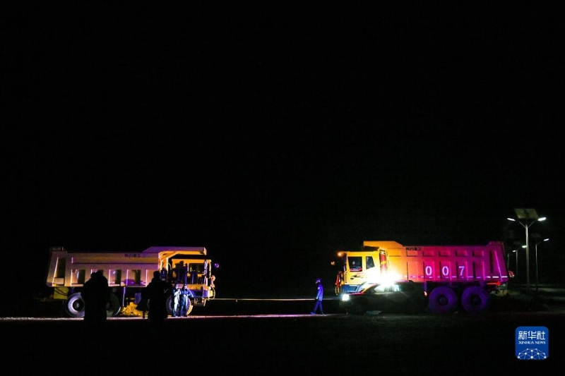 2月23日凌晨,救援車(chē)輛在事故露天煤礦作業(yè)(無(wú)人機(jī)照片)。