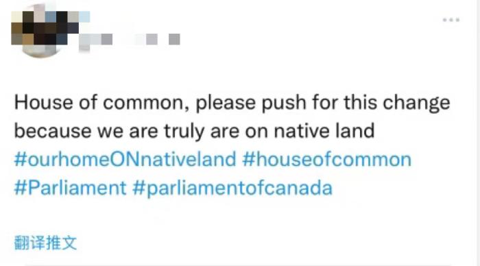 也有網(wǎng)友寫道,“(加拿大)眾議院,請推動這一改變,因為我們真的生活在(印第安人的)土地上?!?/p>