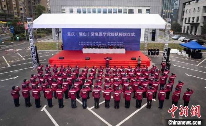 重慶(璧山)緊急醫(yī)學(xué)救援隊授旗儀式21日在璧山區(qū)人民醫(yī)院舉行?!≈貞c市衛(wèi)健委供圖