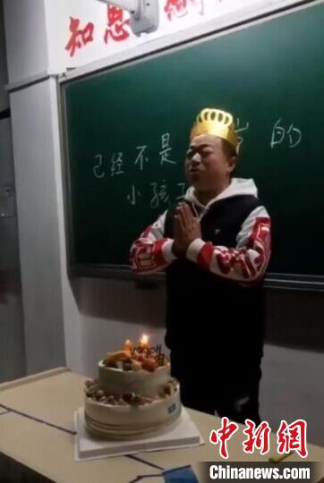 班長(zhǎng)黃冠澎是這場(chǎng)生日驚喜的“策劃者”。“馬老師家在外地,平時(shí)以校為家。有一天晚上,我們和馬老師一起吃晚飯,聽(tīng)到他和朋友打電話,偶然知道他即將過(guò)55歲生日。于是就想著大家一起在學(xué)校為馬老師過(guò)一個(gè)難忘的生日?!秉S冠澎說(shuō),他把這個(gè)想法拿出來(lái)和同學(xué)們一起商量,大家一致贊同。于是,大家開(kāi)始分角色進(jìn)行。