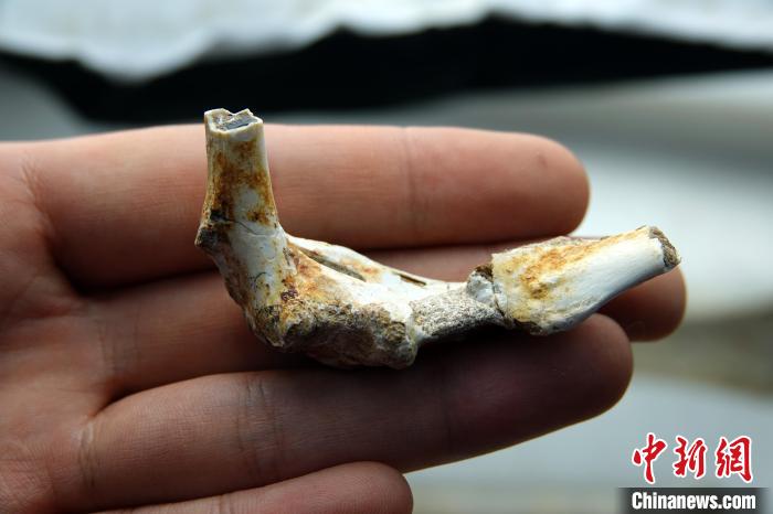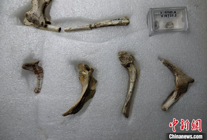 用于本次研究的哈密翼龍肩帶等化石標本。 中新社記者 孫自法 攝