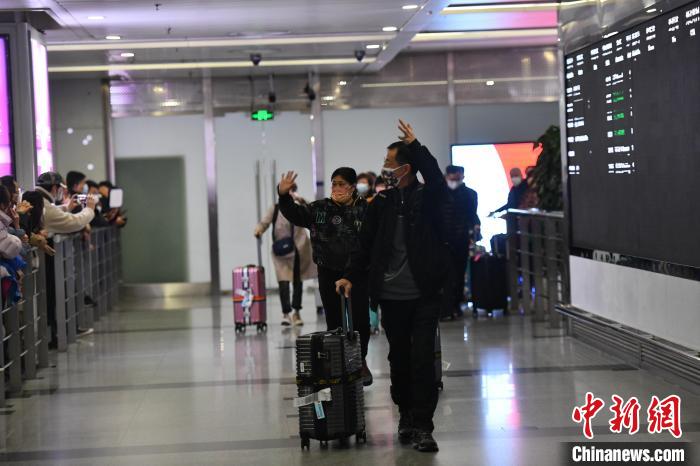 澳門游客抵達(dá)成都雙流國際機(jī)場?!埨恕z