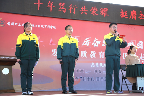升旗儀式后,初中部和高中部的學(xué)生代表們對(duì)過(guò)去歲月做了一次深情的回望,講述自己想感謝誰(shuí)、想艾特誰(shuí)。