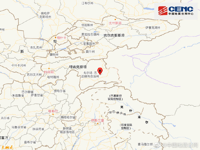 震中距我國邊境線最近約82公里,地震造成新疆喀什等地震感強烈。