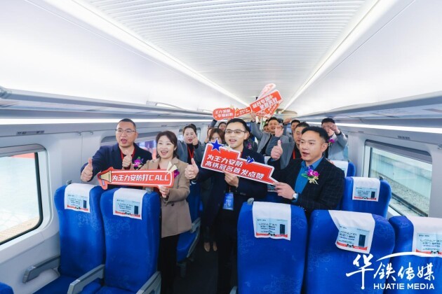 在上海虹橋站現(xiàn)場(chǎng),全體人員共同為列車揭幕,掀開了王力“安防門鎖首家上市企業(yè)”冠名列車的神秘面紗,完成了列車首秀。