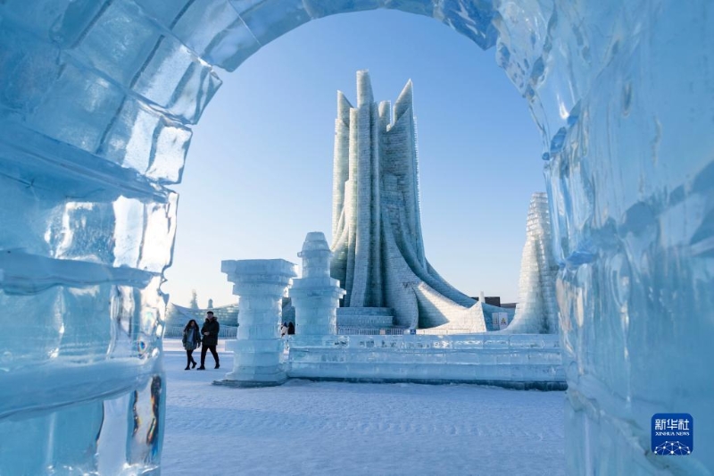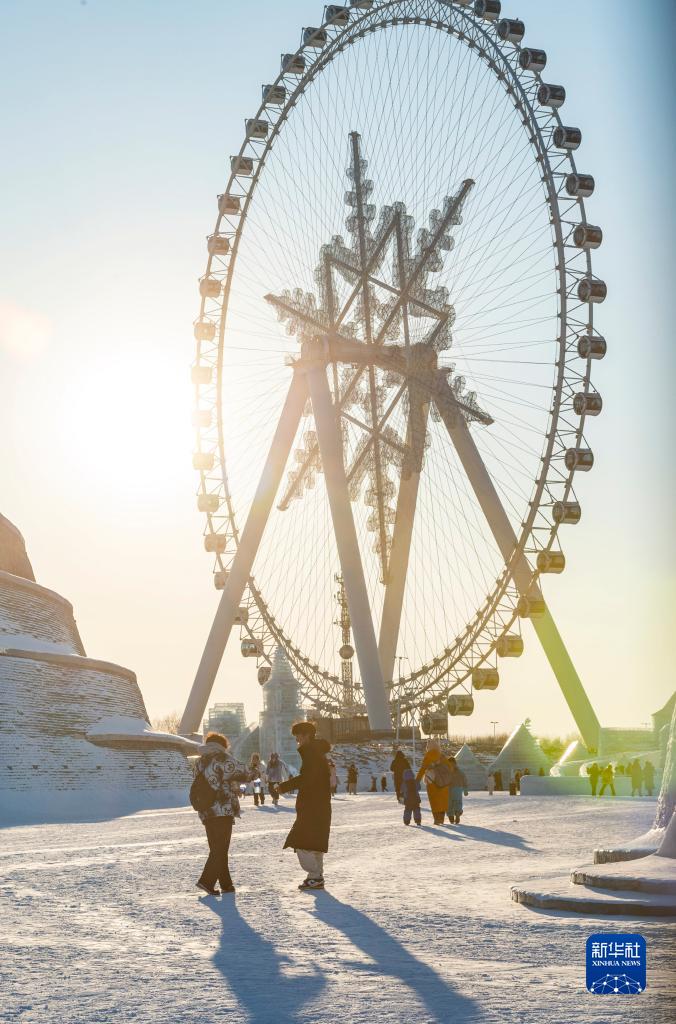 2月25日,游客在哈爾濱冰雪大世界園區(qū)游玩。