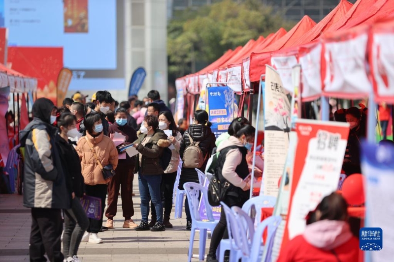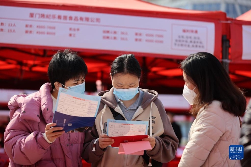 當(dāng)日,一場(chǎng)春季大型招聘會(huì)在福建廈門(mén)五一文化廣場(chǎng)舉行,現(xiàn)場(chǎng)百余家用人單位提供崗位需求,吸引求職者前來(lái)應(yīng)聘。