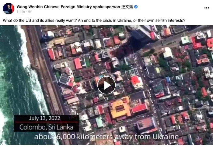 中國(guó)外交部發(fā)言人汪文斌臉書(shū)賬號(hào)轉(zhuǎn)發(fā)了報(bào)道并配文評(píng)論:“美國(guó)及其盟友真正想得到什么?是烏克蘭危機(jī)的結(jié)束,還是一己私利?”